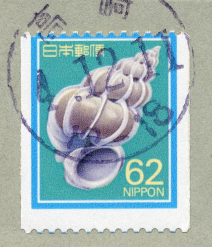 左図の切手は、昨年11月の郵趣会の例会にて収友から頂いた62円オオイトカケガイのコイル切手のオンピースです(画像クリックで拡大画像)。上の目打は印面に掛かり、下の目打の山には下段の印面がわずかに見えている、極端なオフセンターです。エラーかどうかは微妙なところですが、日本切手でこれほどのオフセンターは珍しいものです。